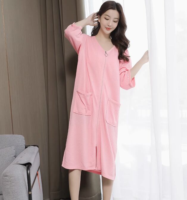 ルームウェア パジャマ 部屋着 寝巻き ナイトウェア シャツワンピース ロング ロング丈 7分袖 七分袖 Vネック ファスナー ポケット 通気性 ポリエステル 薄手 かわいい 大人可愛い きれいめ シンプル 大人 おしゃれ お洒落 大人女子 ラフ 無地 春 夏 秋 10代 20代 30代 40代 レディース 女性用 学生 女子会 お泊まり 休日 韓国 韓国系 オルチャン 楽ちん 体系カバー サイズ M XL 3XL 大きい ゆったり ゆる 色展開 白 ホワイト 灰色 グレー ネイビー グリーン 緑 ピンク | Reluci