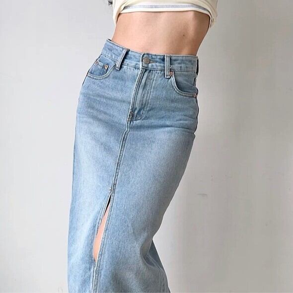 外国の女の子風のコーデがこれ一着で叶う、デニムロングスカート。