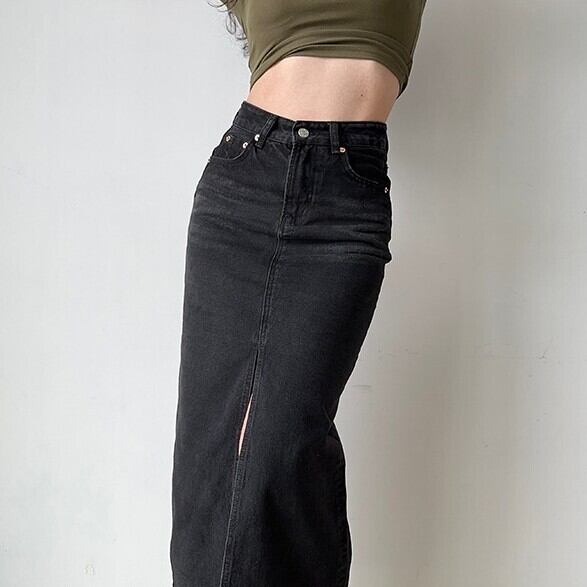 スカート ボトムス レディース デニムスカート 膝下 ロング ワイド スリム 細身 ストレート Iライン スリット ポケット ハイウエスト アメカジ ウォッシュ デニム ブルーデニム 綿 コットン ポリエステル かわいい 大人可愛い シンプル カジュアル おしゃれ レトロ こなれ感 ラフ ガーリー クール 存在感 抜け感 キュート クラシカル ベーシック アメリカン ナチュラル 無地 春 夏 ロングシーズン 学生 学校 通学 デート お出かけ 休日 脚長 普段使い 着回し S M L 黒 ブラック ブルー | Reluci