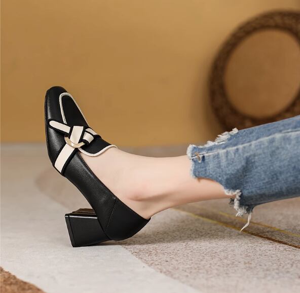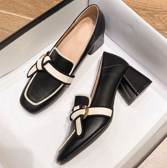 シューズ パンプス レディースパンプス スクエアトゥパンプス ローファー ハイヒール チャンキーヒール ミドルヒール スクエアトゥ 革 レザー 大人可愛い シンプル 大人 上品 おしゃれ お洒落 エレガント 大人っぽい 無地 春 夏 秋 冬 オールシーズン レディース 10代 20代 30代 40代 OL 通勤 学生 通学 デート お出かけ 休日 ホテル サイズ 22.5cm 23.0cm 23.5cm 24.0cm 24.5cm 25.0cm 色展開 黒 ブラック アプリコット カラバリ | Reluci