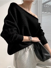 ニット セーター レディース ショート 長袖 ボリューム袖 ラウンドネック オフショルダー ワイド アシンメトリー フェミニン ニット モヘア ウール かわいい 大人可愛い シンプル カジュアル おしゃれ こなれ感 ラフ ルーズ 個性的 クール エレガント 主役級 存在感 とろみ感 抜け感 キュート 都会的 ラグジュアリー ベーシック 無地 秋 冬 デート お出かけ レストラン 休日 ホテル ショッピング カフェ 普段使い 着回し モテ トレンド S M 黒 ブラック グレー ベージュ レッド | Reluci