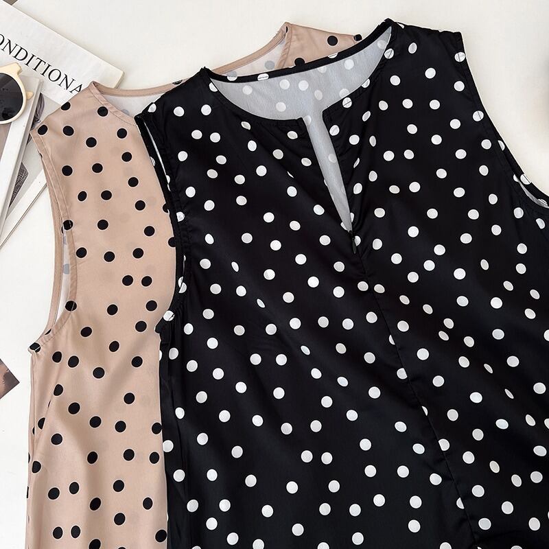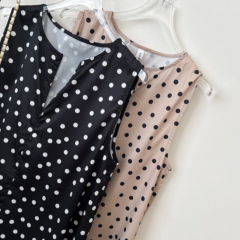 ワンピース サマードレス レディース 膝丈 袖なし ノースリーブ ラウンドネック 襟なし ワイド フレア Aライン 切り替え フェミニン タック スリット かわいい 大人可愛い きれいめ シンプル カジュアル 上品 おしゃれ レトロ ガーリー 個性的 エレガント モダン 存在感 ラブリー キュート クラシカル ベーシック ロマンティック ドット柄 水玉 春 夏 学生 デート お出かけ レストラン 休日 バカンス ホテル ショッピング コンサート 体型カバー 清楚 定番 フリーサイズ ブラック カーキ | Reluci
