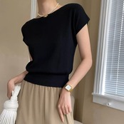 さわやかで大人っぽく、肌なじみの良いカラー展開の半袖ニットです。