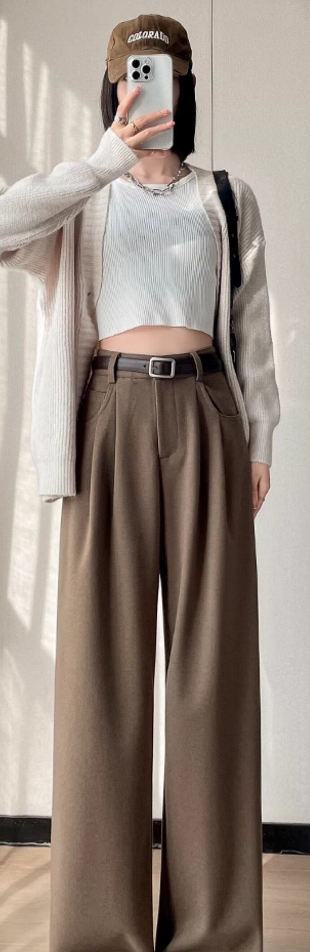 トレンドの落ち感のある上品なシルエットのワイドパンツ。
