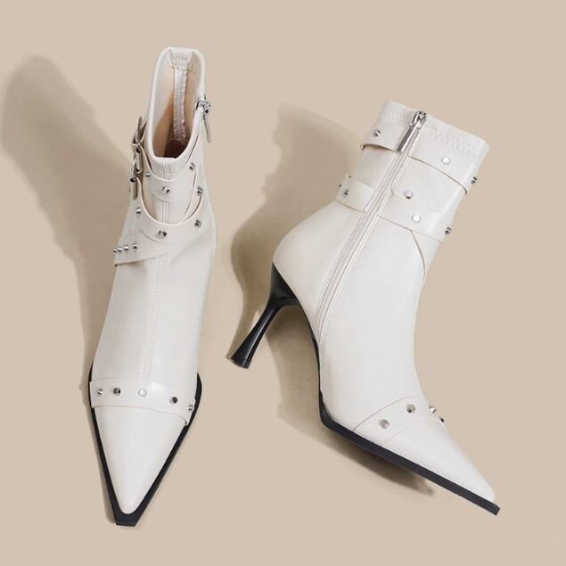 ショートブーツ レディース ブーツ ダンス ハイヒール ピンヒール ポインテッドトゥ ベルト 美脚 脚長 かわいい 大人可愛い きれいめ シンプル 上品 おしゃれ かっこいい エレガント クール モード セクシー モダン 主役級 存在感 華やか シック 無地 春 秋 冬 二次会 デート お出かけ パーティー イベント リゾート 旅行 デイリー 普段使い お揃い 韓国 コーデ スタイル 高見え 格上げ モテ 23.0cm 24.0cm 25.0cm 白 黒 茶色 モノトーン ホワイト ブラック ブラウン | Reluci