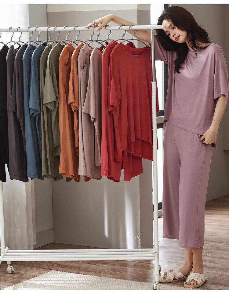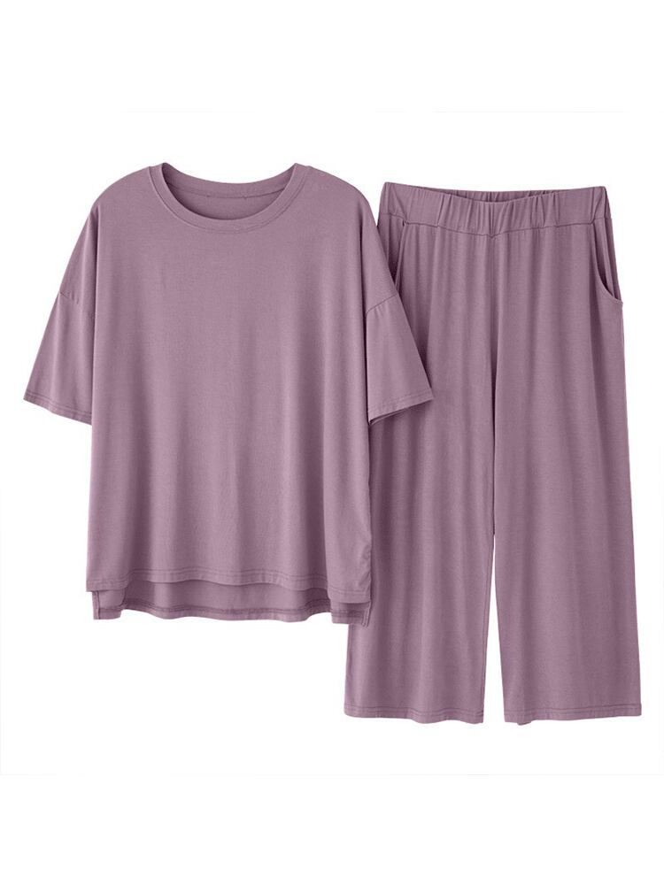 ルームウェア パジャマ 部屋着 寝巻き ナイトウェア 半袖 ミディアム丈 ミディアム丈 クルーネック ウエストゴム 上下セット ツーピース かわいい 大人可愛い カジュアル おしゃれ お洒落 大人可愛い 大人女子 ラブリー キュート ガーリー 夏 10代 20代 30代 レディース 女性用 学生 女子会 お泊まり 休日 韓国 韓国系 オルチャン ファッション コーデ 楽ちん 体系カバー 無地 L XL レッド カーキ グリーン グレー パープル ブラック ブルー カラバリ | Reluci