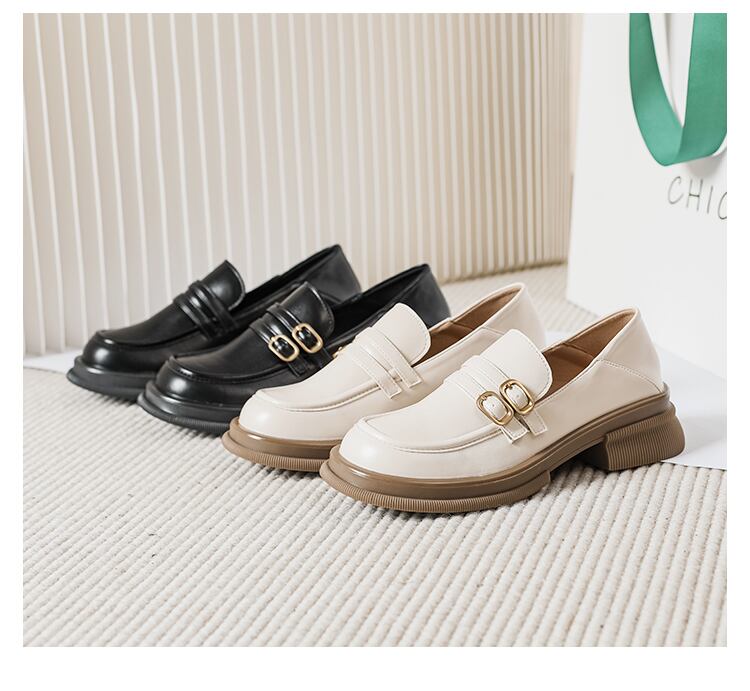 大人の女性にぴったりな、ラウンドトゥデザインのローファー。