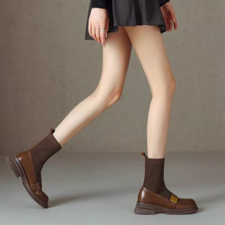 ローファーを履いているかのようなデザインがシックで大人可愛いソックスブーツです。