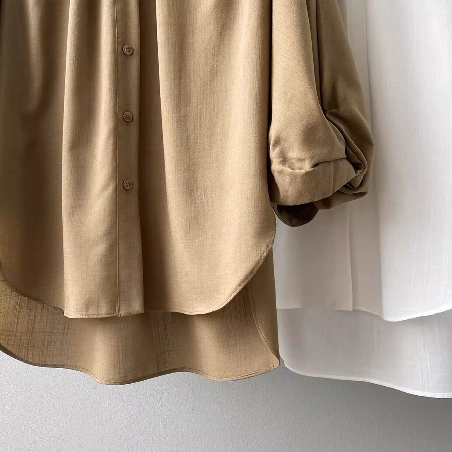 レディース トップス シャツ 前開き 7分袖 ボリューム袖 バルーン袖 ラウンドネック 襟なし 透け感 ボタン 薄手 かわいい 大人可愛い きれいめ シンプル 上品 おしゃれ こなれ感 ラフ ガーリー とろみ感 抜け感 キュート 都会的 ナチュラル 春 夏 秋 ロングシーズン 授業参観 会議 プレゼン ママ OL 通勤 デート お出かけ イベント 旅行 レストラン 女子会 休日 ショッピング 発表会 コンサート ライブ カフェ 楽ちん 体型カバー 普段使い 着回し モテ 清楚 M L ホワイト カーキ | Reluci