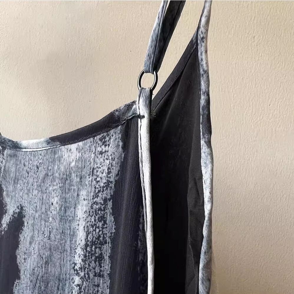モノトーンカラーの総柄が個性的で、おしゃれな雰囲気を演出します。