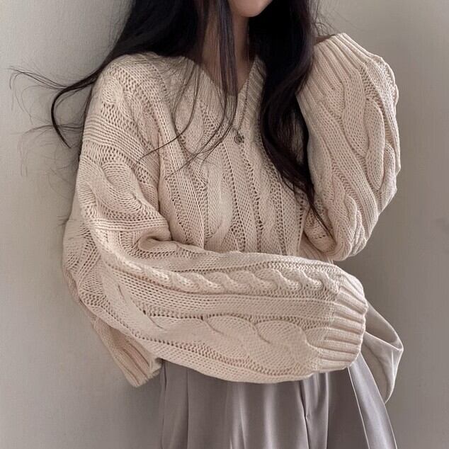 レディース ニット セーター 長袖 萌袖 Vネック ストレート Iライン もこもこ ケーブルニット 編み上げ 伸縮性 中厚手 かわいい 大人可愛い きれいめ 上品 おしゃれ こなれ感 ラフ ガーリー エレガント 存在感 とろみ感 抜け感 ラブリー キュート 都会的 ロマンティック 秋 冬 クリスマス バレンタイン ママ 学生 通学 デート お出かけ イベント 旅行 女子会 休日 ショッピング コンサート ライブ カフェ 楽ちん 暖かい 普段使い 着回し モテ フリーサイズ ブラック アプリコット ネイビー | Reluci