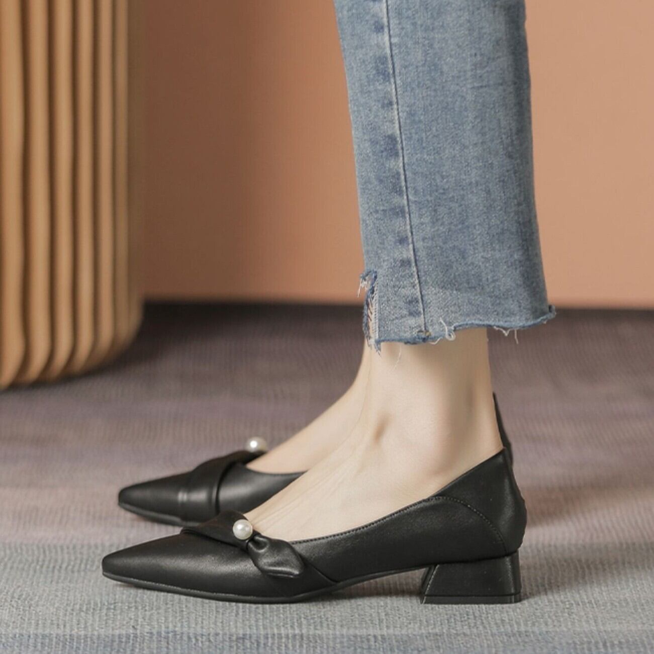 パンプス レディース ヒールパンプス 太ヒール チャンキーヒール ローヒール 2.5cm ポインテッドトゥ リボン パール 柔らかい 革 レザー かわいい 大人可愛い きれいめ シンプル カジュアル 上品 おしゃれ フォーマル ラブリー キュート ガーリー 華やか シック クラシック フェミニン 無地 春 秋 卒業式 卒園式 謝恩会 結婚式 二次会 披露宴 オールシーズン オフィス ビジネス OL 通勤 デート お出かけ パーティー イベント レストラン 休日 デイリー 普段使い ブラック オフホワイト | Reluci