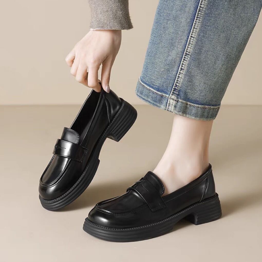 レトロ ローファー ヒール 韓国 ブラック ラバーソール 無地 フェイクレザー パーティースタイル ホームパーティーアイテム オフィススタイル エレガントスタイル カジュアルスタイル フォーマルスタイル 謝恩会 結婚式・二次会 ラウンジウェア かわいい 大人可愛い きれいめ シンプル デート お出かけ パーティー イベント ブラック | Reluci