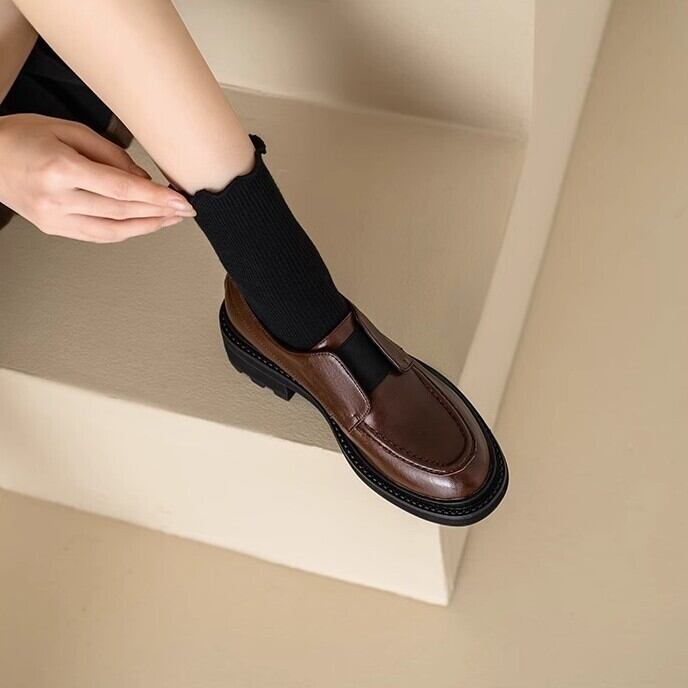 ローファー レディース ダッドシューズ ローヒール 厚底 4.5cm ラウンドトゥ 柔らかい 革 レザー かわいい 大人可愛い シンプル カジュアル 上品 おしゃれ かっこいい レトロ キュート マニッシュ クール 存在感 こなれ感 シック スタイリッシュ 無地 春 秋 オフィス OL 通勤 通学 デート お出かけ 休日 ショッピング 女子会 デイリー 普段使い コーデ 着回し 22.5cm 23.0cm 23.5cm 24.0cm 24.5cm 21.5cm 小さいサイズ 黒 茶色 ブラック ブラウン | Reluci