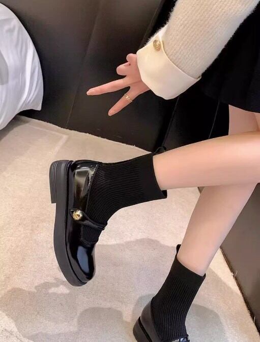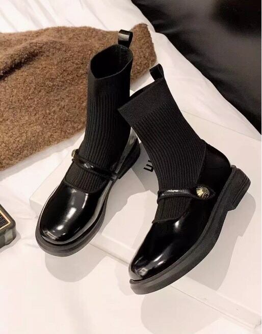靴下とパンプスが一体化したような個性的なデザインで、いろいろなコーディネートに合わせやすいショートブーツ。