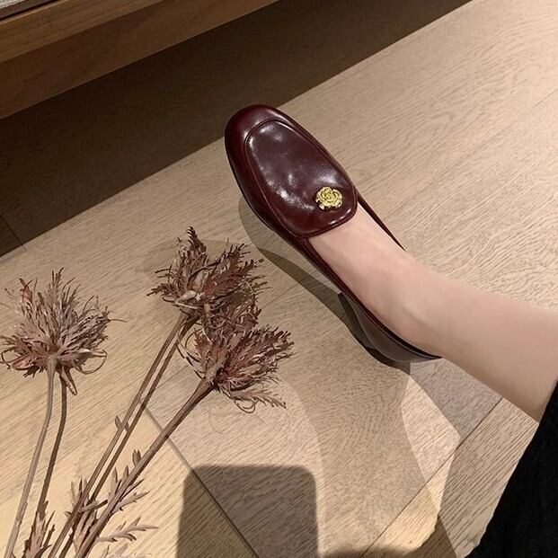 ゴールドの花のチャームがお洒落で目を引くローファーです。