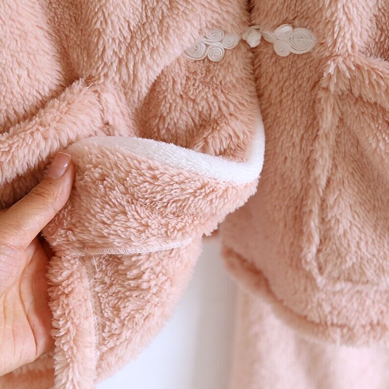 チャイナ風のシルエットでもこもこのデザインが大人可愛いルームウェアです。