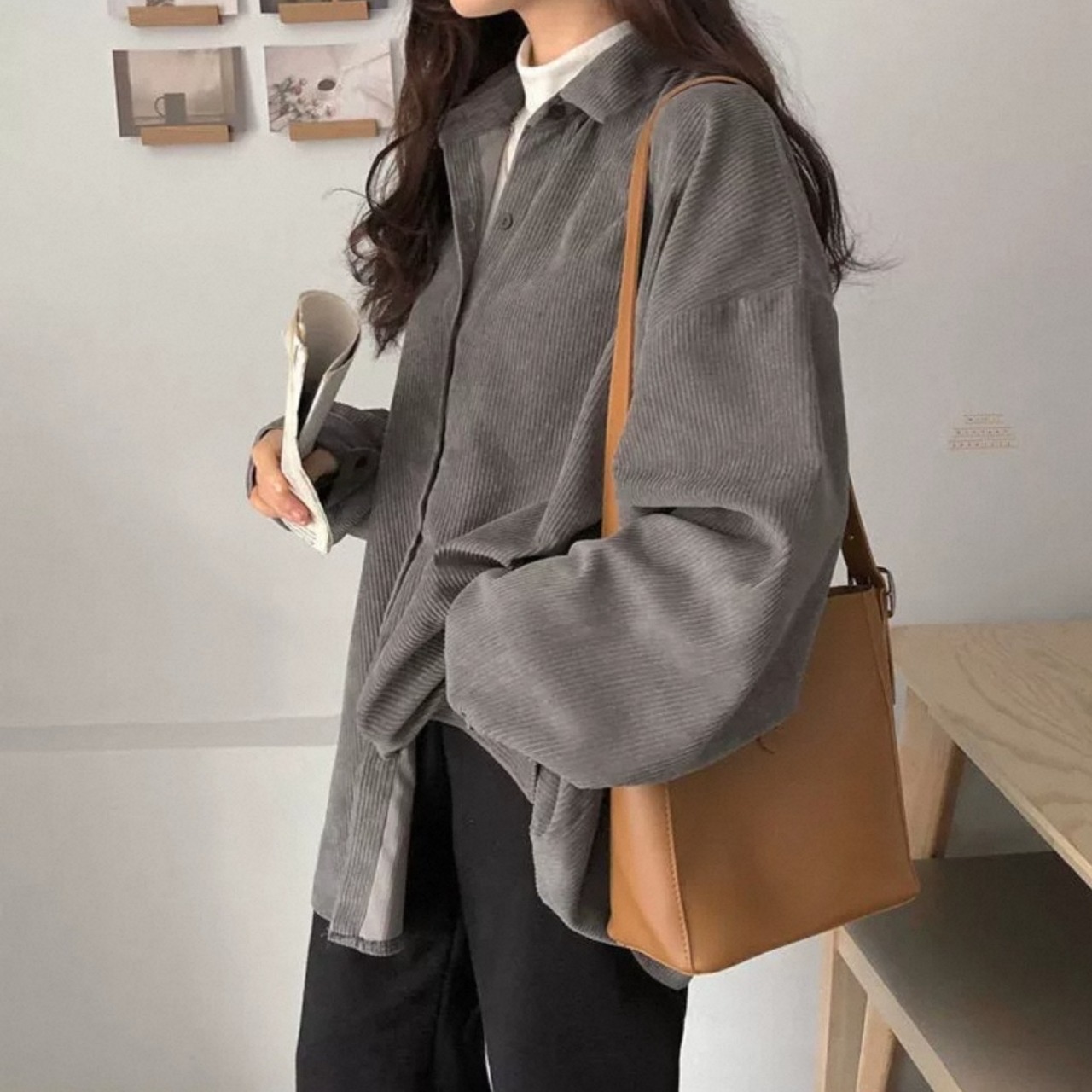ナチュラルな風合いのコーデュロイに、オーバーサイズのゆるシルエット。オルチャンスタイルにぴったりなニュアンスカラーで、春も秋も気分で羽織れる一着。軽やかで、気取らない存在感を放ちます。
