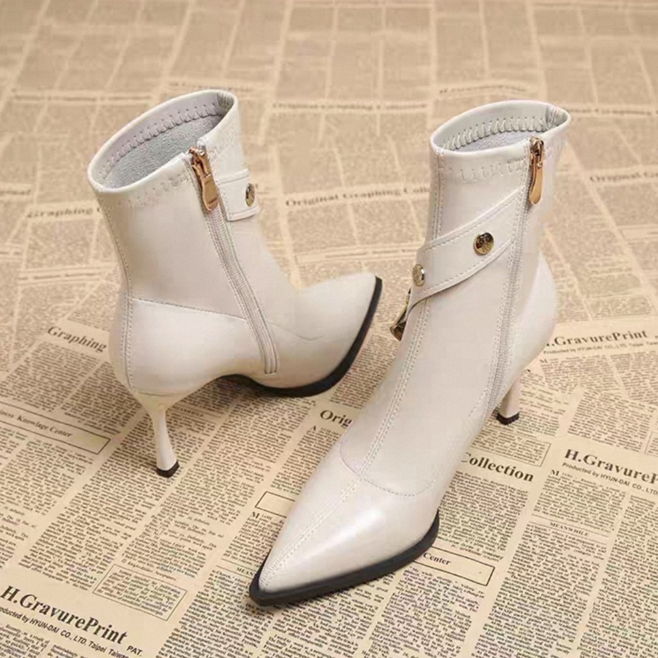 女性らしさを引き立てるスリムなフォルムに、フレンチエッセンスを加えた高級アンクルブーツ。ヒールは安定感のあるスティレットタイプで、美しい立ち姿を演出。上質な素材感が秋冬コーデを一段と格上げします。