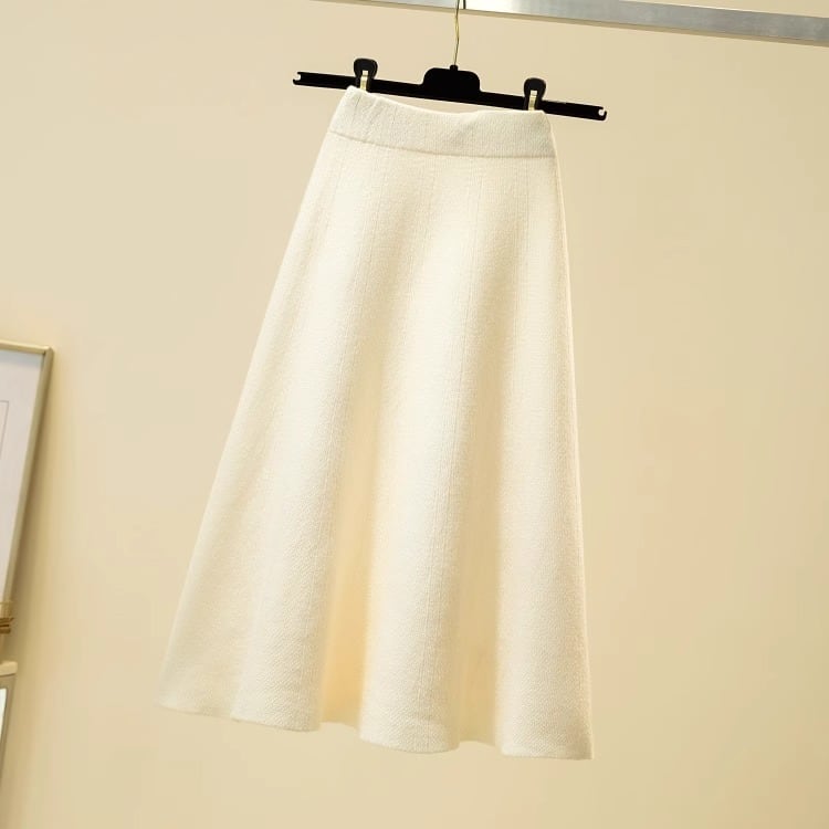 スカート ニットスカート ミディアムスカート ミディアム丈 ハイウエスト Aライン フレア 着痩せ お腹カバー 厚手 きれいめ シンプル カジュアル 大人 上品 おしゃれ お洒落 大人可愛い 大人女子 ラフ セクシー 無地 春秋 冬 10代 20代 30代 レディース 女性用 学生 デート お出かけ 女子会 休日 着回し 普段使い 楽ちん 体系カバー ワンサイズ フリーサイズ 黒 ブラック アプリコット コーヒー カーキ グレー | Reluci