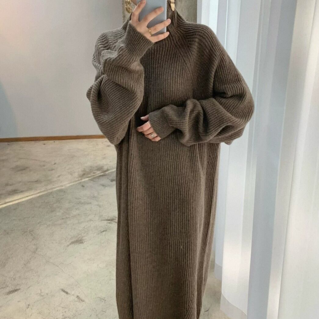 レディース ワンピース ニットワンピース シック ニット ニットドレス 長袖 無地 ピットデザイン ハイネック ボリューム袖 タートルネック ルーズ かわいい 大人可愛い きれいめ シンプル カジュアル 上品 おしゃれ ガーリー エレガント 抜け感 ラブリー レイジースタイル ハイカラー 秋 冬 ママ 学生 通学 デート お出かけ 女子会 休日 ショッピング カフェ 楽ちん 体型カバー 清楚 定番 | Reluci