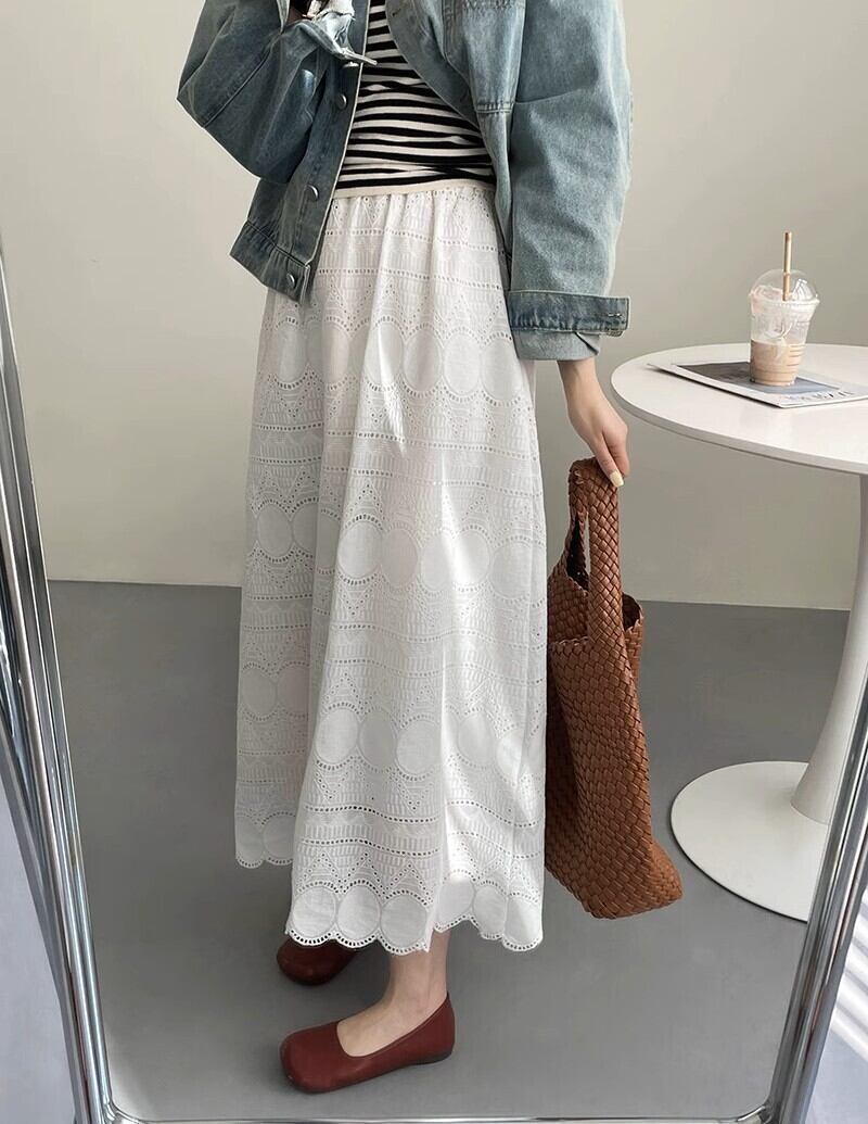 レディース スカート フレアスカート ロングスカート レーススカート 膝下 ロング 丈長 フレア Aライン フェミニン ウエストゴム 透け感 薄手 かわいい 大人可愛い きれいめ シンプル 上品 おしゃれ こなれ感 ラフ ガーリー エレガント 主役級 存在感 とろみ感 抜け感 ラブリー キュート 都会的 ロマンティック ナチュラル 春 夏 ロングシーズン 授業参観 ママ 学生 通学 デート お出かけ イベント 旅行 女子会 休日 バカンス ショッピング 発表会 コンサート ライブ カフェ M L ホワイト | Reluci