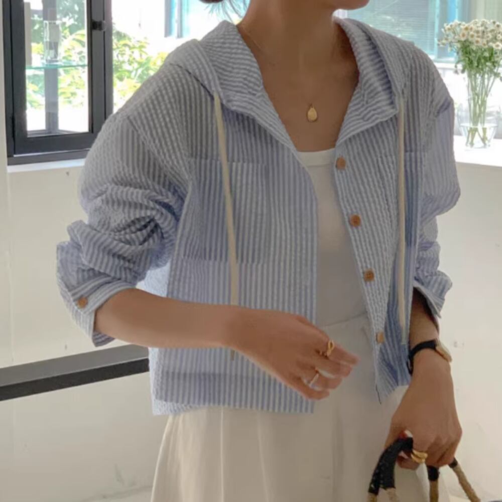 このおしゃれで可愛いカーディガンは、ショート丈と長袖デザインが特徴で、春や夏のお出かけにぴったりの一着です。ラウンドネックとスタンドカラーが大人のフェミニンさを演出し、シースルー素材が抜け感をプラスします。軽やかな透け感が、カジュアルなコーディネートにも上品さを引き立ててくれ、旅行やデート、オフィスでの普段使いにも最適な主役級のアイテムです。