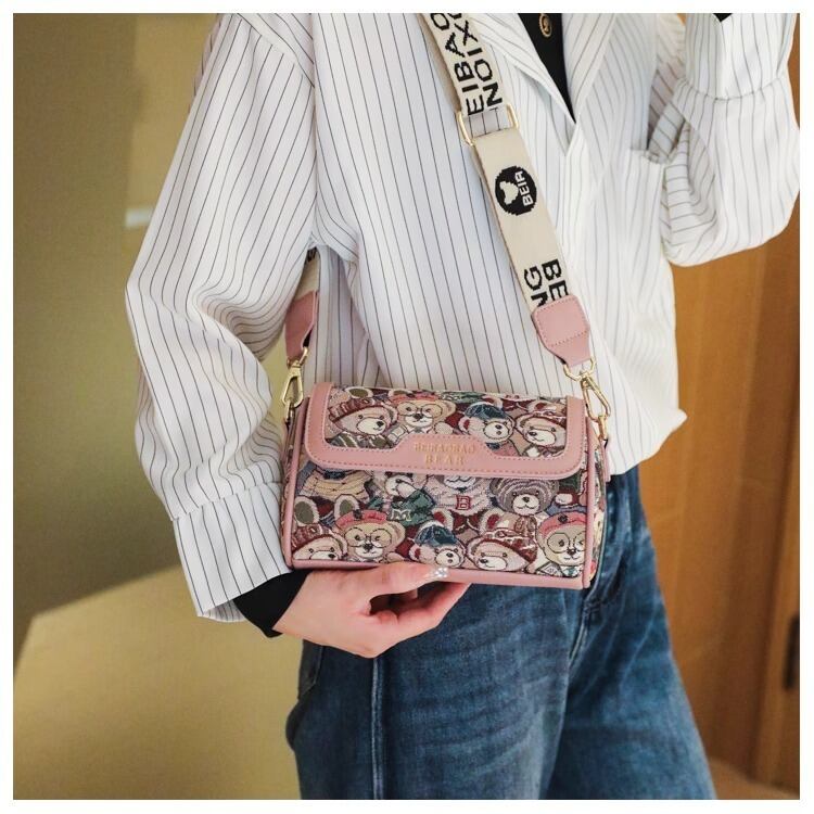ショルダーバッグ バッグ レディース 肩がけ スクエア ファスナー かわいい 大人可愛い お洒落 レトロ こなれ感 ラブリー キュート 主役級 存在感 個性的 クラシック くま 総柄 デート お出かけ イベント リゾート お買い物 女子会 休日 ランチ会 レストラン 普段使い コーデ スタイル モテ 甘めコーデ 春 夏 秋 冬 シーズンレス お食事会 ピンク ブラウン ネイビー 定番カラー | Reluci