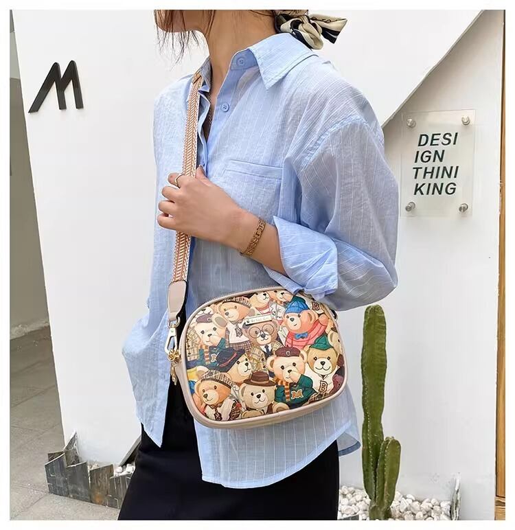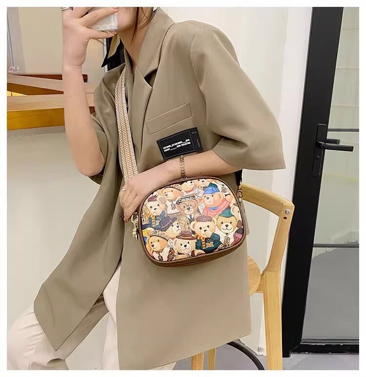 ショルダーバッグ バッグ レディース 肩がけ ファスナー かわいい 大人可愛い お洒落 レトロ こなれ感 ラブリー キュート 主役級 存在感 個性的 クラシック くま 総柄 デート お出かけ イベント リゾート お買い物 女子会 休日 ランチ会 レストラン 普段使い コーデ スタイル モテ 甘めコーデ 春 夏 秋 冬 シーズンレス お食事会 オフホワイト ダークブラウン 定番カラー | Reluci