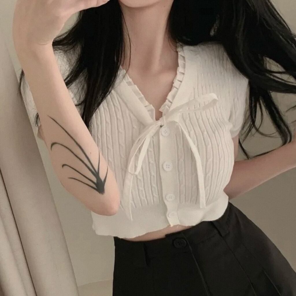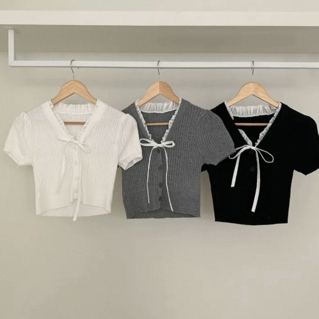 レディース トップス セーター サマーセーター サマーニット シルクニット ショート丈 スリムフィット Vネックレースアップ シック 韓国風シック ストラップ リボン かわいい 大人可愛い きれいめ シンプル カジュアル ギャザー おしゃれ ガーリー エレガント 抜け感 ラブリー 夏 薄手 ママ 学生 通学 デート お出かけ 女子会 休日 ショッピング カフェ 楽ちん 体型カバー 清楚 定番 グレー ブラック オフホワイト | Reluci