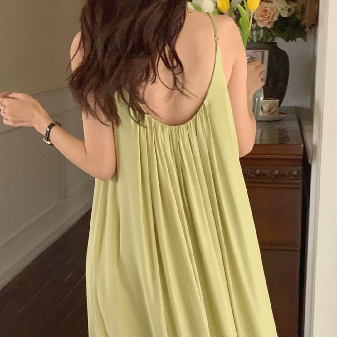 レディース ワンピース スカート ロングスカート ノースリーブ ロング丈 ロングワンピ ロングワンピース シック 韓国風 サスペンダードレス バックレス プリーツデザイン ラウンドネック シンプル かわいい 大人可愛い きれいめ カジュアル おしゃれ エレガント 抜け感 ラブリー 夏 薄手 ママ 学生 通学 デート お出かけ 女子会 休日 ショッピング カフェ 楽ちん 体型カバー スニーカースタイル 清楚 定番 オフホワイト グリーン ブラック | Reluci