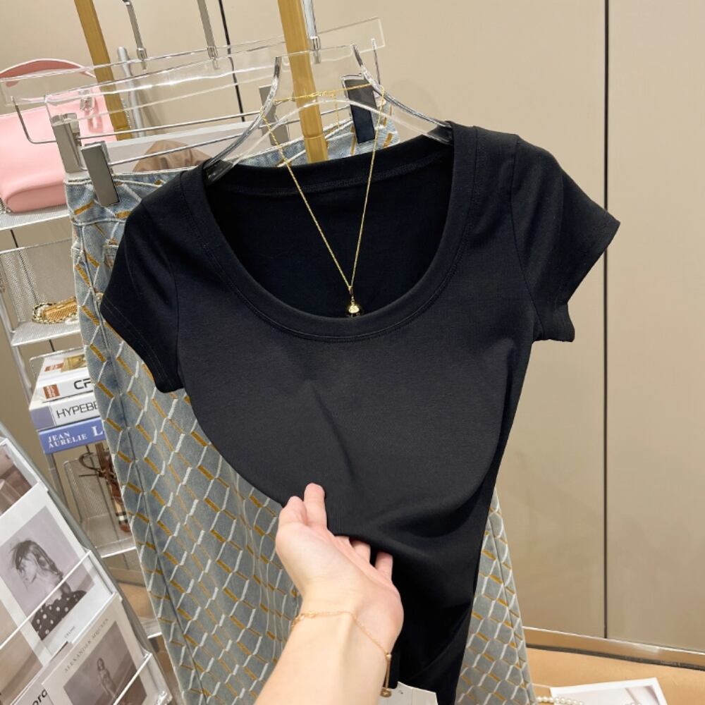 大人可愛いスタイルを叶える、シンプルでありながらもおしゃれな半袖クルーネックTシャツ。