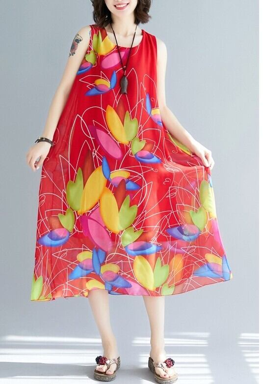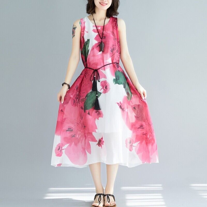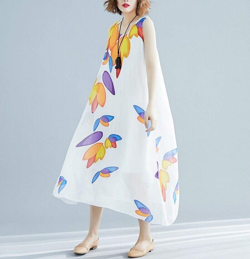 ワンピース レディース 膝下 ミモレ ロング 袖なし ノースリーブ ラウンドネック ワイド フレア Aライン シフォン 透け感 薄手 ポリエステル かわいい 大人可愛い カジュアル 上品 おしゃれ アジアン エキゾチック 個性的 クール 存在感 ラグジュアリー 花柄 フラワー 総柄 大判 幾何学模様 春 夏 ママ デート お出かけ リゾート 旅行 女子会 休日 バカンス ショッピング 楽ちん 体型カバー 大きいサイズ ビッグ ゆったり ゆる フリーサイズ プラスサイズ ホワイト イエロー レッド | Reluci