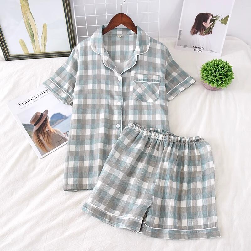 ルームウェア パジャマ 部屋着 セットアップ レディース 寝巻き ショート丈 半袖 Vネック ワイド ストレート ウエストゴム 薄手 二重ガーゼ 綿 コットン かわいい 大人可愛い カジュアル 上品 おしゃれ レトロ アジアン こなれ感 ガーリー 個性的 エレガント 存在感 とろみ感 抜け感 ラブリー キュート クラシカル ベーシック ロマンティック チェック ハート 猫 レモン 植物 夏 お泊まり 休日 楽ちん 体型カバー 普段使い M L XL | Reluci