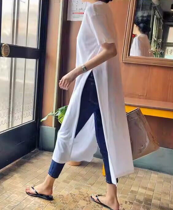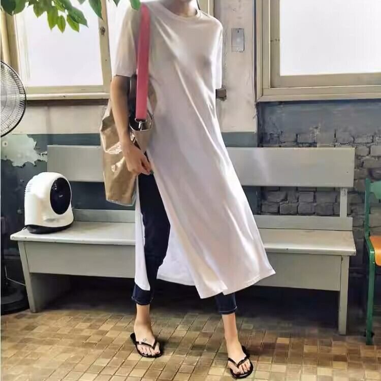 レディース ワンピース ロンT 膝下 ロング 丈長 半袖 ラウンドネック ストレート Iライン スリット サイドスリット 伸縮性 薄手 かわいい 大人可愛い きれいめ シンプル 上品 おしゃれ こなれ感 ラフ ガーリー 存在感 とろみ感 抜け感 キュート 都会的 ロマンティック ナチュラル 無地 夏 授業参観 ママ 通勤 学生 お出かけ アウトドア リゾート 旅行 公園 女子会 休日 バカンス ショッピング コンサート ライブ カフェ フェス 楽ちん 体型カバー 普段使い 着回し モテ ゆる 白 ホワイト | Reluci