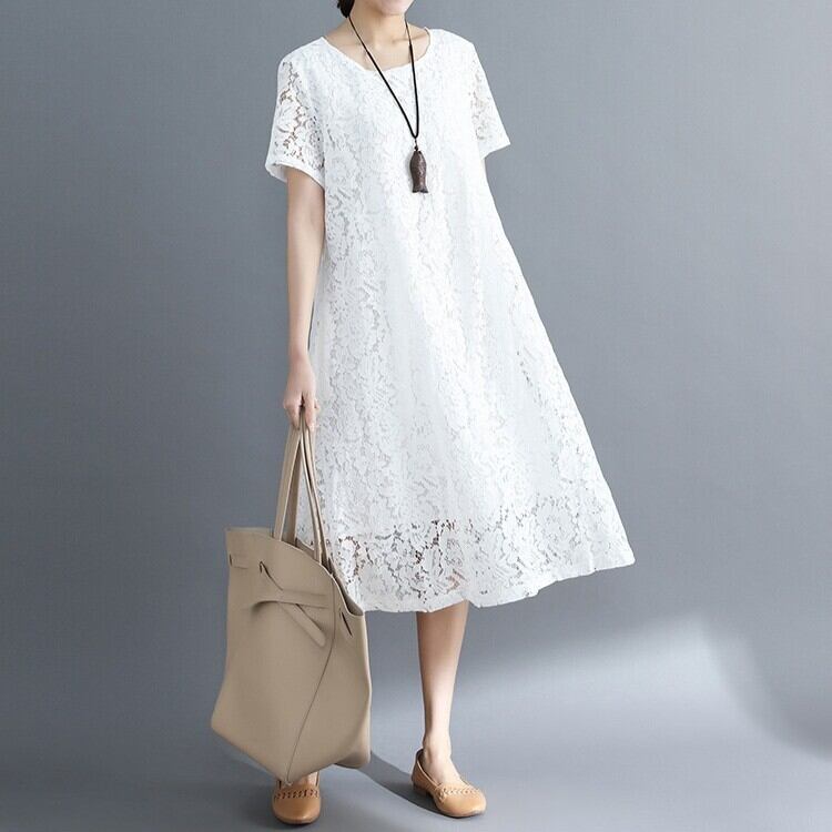 ワンピース レディース 膝丈 ミモレ 半袖 ラウンドネック ワイド フレア Aライン フェミニン レース ポケット 透け感 かわいい 大人可愛い カジュアル 上品 おしゃれ ガーリー エレガント 主役級 存在感 ラブリー キュート ラグジュアリー 花柄 フラワー 総柄 春 秋 デート お出かけ レストラン 休日 ホテル ショッピング 発表会 体型カバー 清楚 M L XL 2XL 3XL 大きいサイズ ビッグ ゆったり ゆる プラスサイズ ホワイト ブラック グレー ピンク レッド アプリコット パープル | Reluci