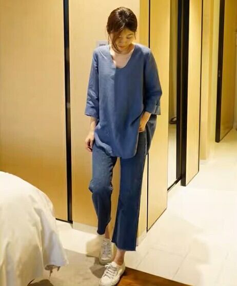 無地でどんなボトムスとも合わせやすく、ゆったり感があり体型カバーもできる万能な1枚です。