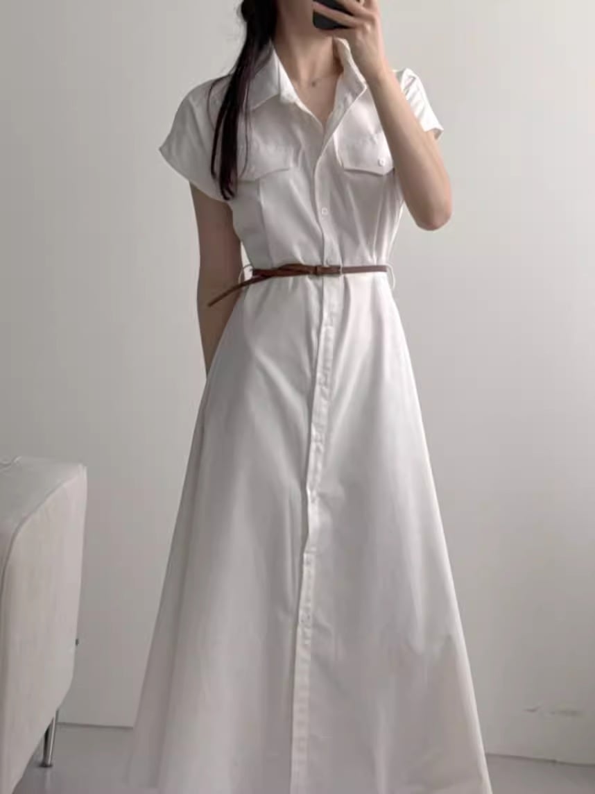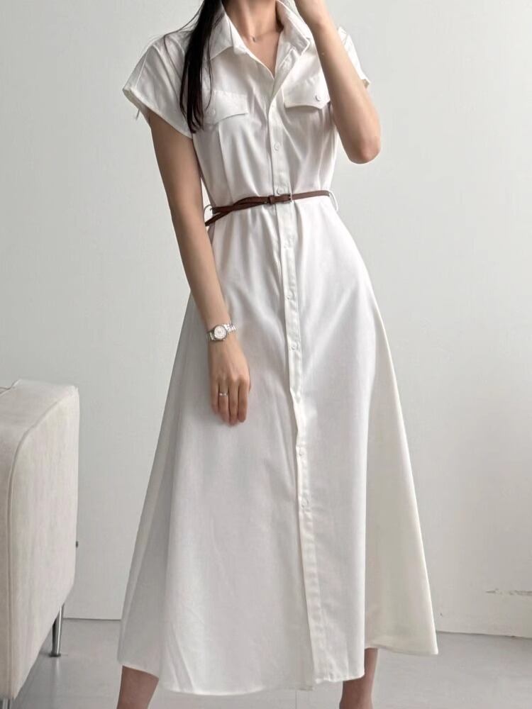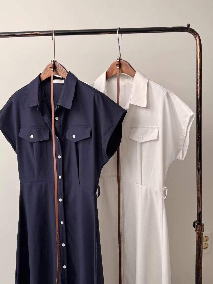 この夏、大人かわいく品のあるスタイルを演出するために、2色選択のロングシャツドレスを是非お試しください。