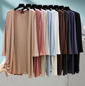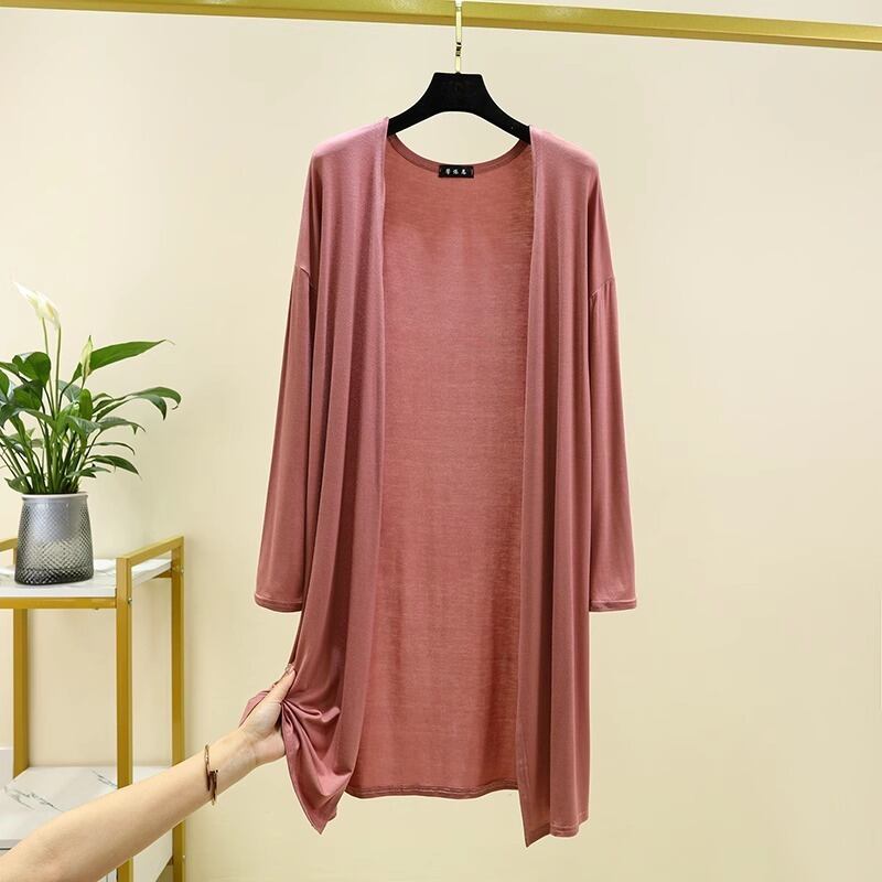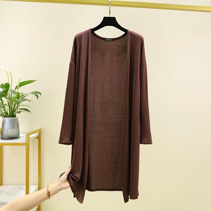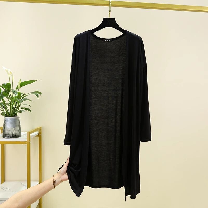 レディース カーディガン ミドル丈 ゆったり 大きめサイズ 長袖 薄手 無地 春 夏 L XL 2XL 白 黒 ダークグレー ベージュ 水色 コーヒー デニムブルー ライトピンク ライトカーキ | Reluci