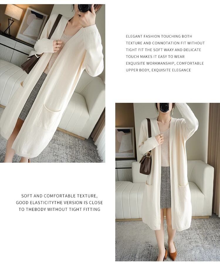 レディース ニット カーディガン ミドル丈 長袖 シンプル カジュアル 無地 春 秋 S M L XL 2XL ゆったり ダークグリーン ネイビーブルー キャメル 白 黒 グレー レッド アプリコット | Reluci