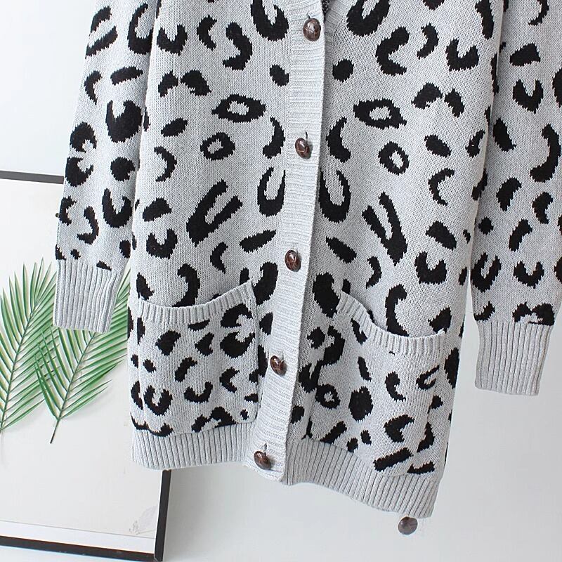 個性的な豹柄が目を引く、2色選択可能なレディースニットカーディガン。Vネックで首元をすっきりと見せ、重ね着にもぴったりです。春から秋までの季節に活躍するアイテムで、SからXLの4サイズ展開でご用意しています。