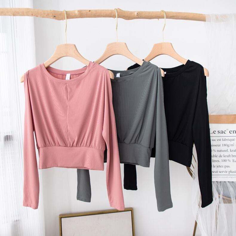 トップス ロンT カットソー 部屋着 レディース オープンショルダー ラウンドネック ワイド ドレープ バルーン フェミニン タック ウエストマーク スリット ハイウエスト ギャザー ストレッチ 伸縮性 かわいい 大人可愛い シンプル カジュアル おしゃれ こなれ感 スポーティー ガーリー 抜け感 キュート ベーシック アクティブ 無地 春 秋 ジム ヨガ ピラティス ダンス 重ね着 楽ちん 脚長 普段使い 着回し レイヤード 定番 S M L ゆったり ゆる 黒 ブラック グレー ピンク アプリコット | Reluci