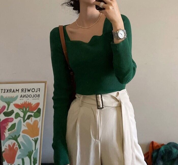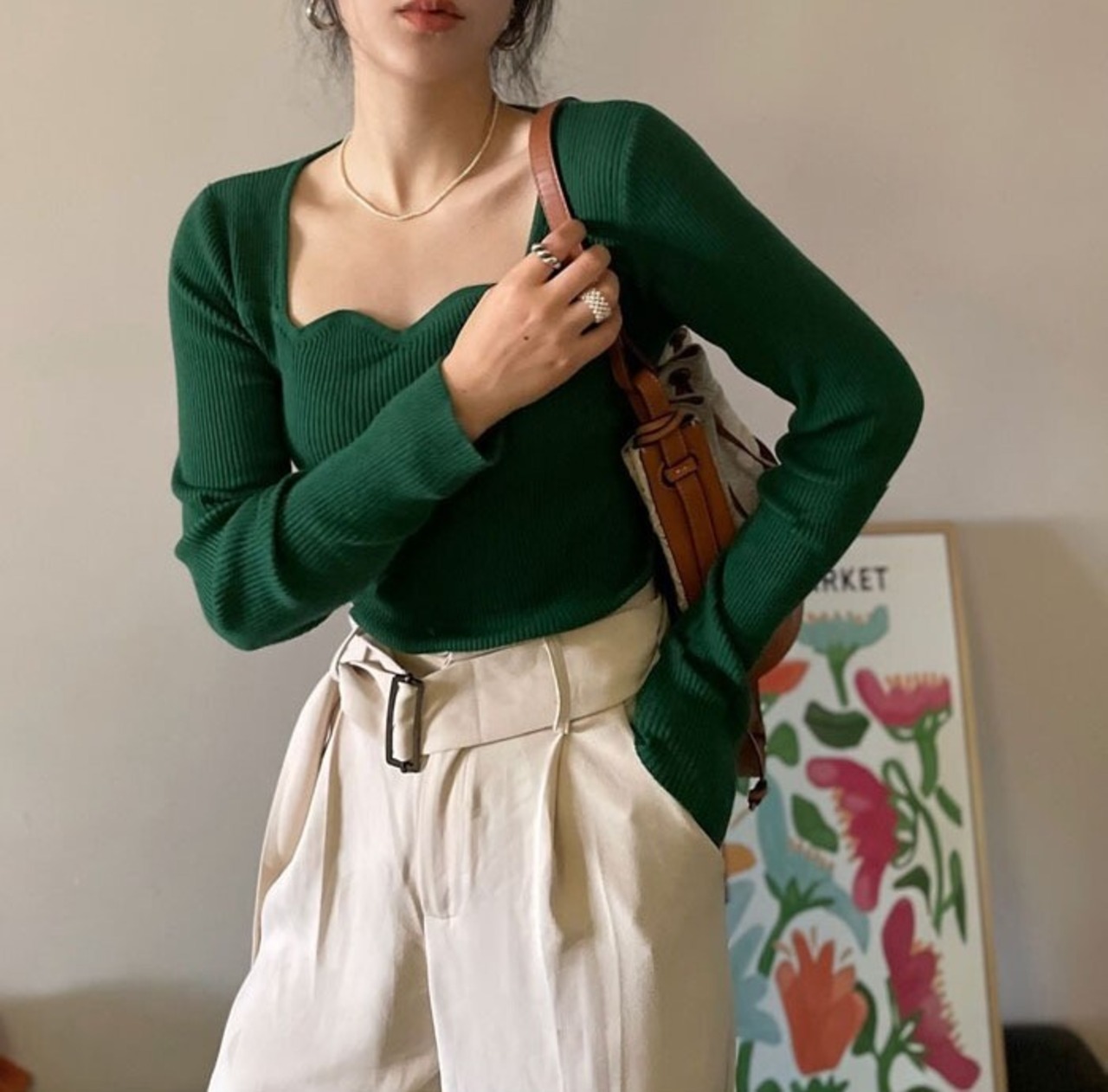 カットソー ニット セーター レディース 長袖 萌袖 スクエアネック タイト スリム 細身 ストレート スマート フェミニン リブニット コンサバ かわいい 大人可愛い シンプル カジュアル 上品 おしゃれ レトロ ガーリー エレガント 抜け感 ラブリー キュート クラシカル ベーシック 無地 春 秋 冬 オフィス OL 通勤 学生 学校 通学 デート お出かけ 旅行 レストラン 休日 ショッピング カフェ 韓国 オルチャン コーデ 普段使い 着回し モテ 清楚 定番 フリーサイズ ブラック グリーン | Reluci