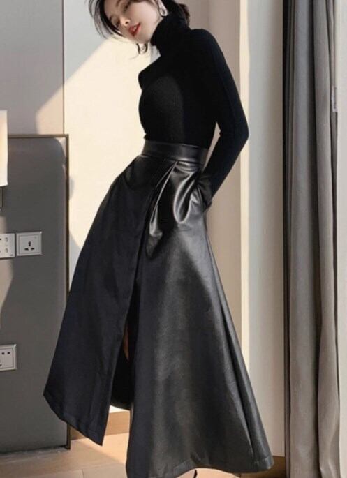 スカート レディース ラップスカート レザースカート 膝下 ミモレ フレア Aライン ラップ スリット ファスナー フェイクレザー 大人可愛い シンプル カジュアル おしゃれ かっこいい こなれ感 マニッシュ 個性的 クール エレガント 主役級 存在感 抜け感 都会的 ラグジュアリー ワイルド 無地 秋 冬 デート お出かけ レストラン 女子会 休日 ショッピング コーデ 体型カバー 脚長 普段使い 着回し インスタ映え Y2K XS S M L XL 2XL 大きいサイズ ビッグ ゆったり ブラック | Reluci
